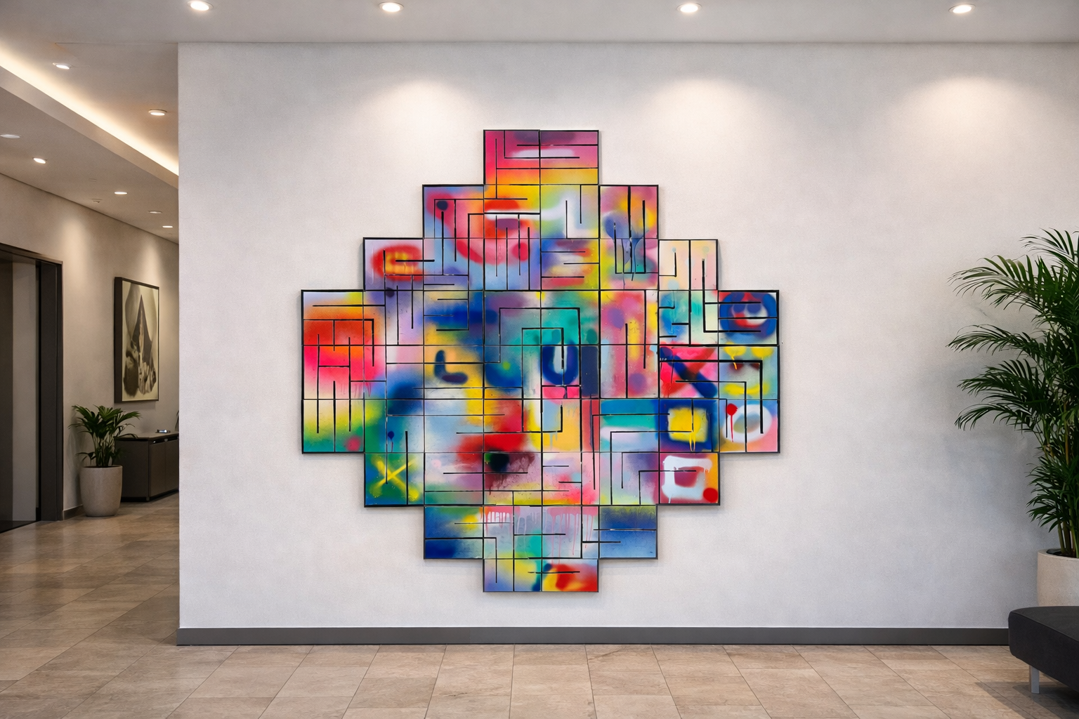 Kholab conçoit des fresques murales artistiques, pensées pour structurer les espaces, accompagner les usages et affirmer l’identité d’un lieu.