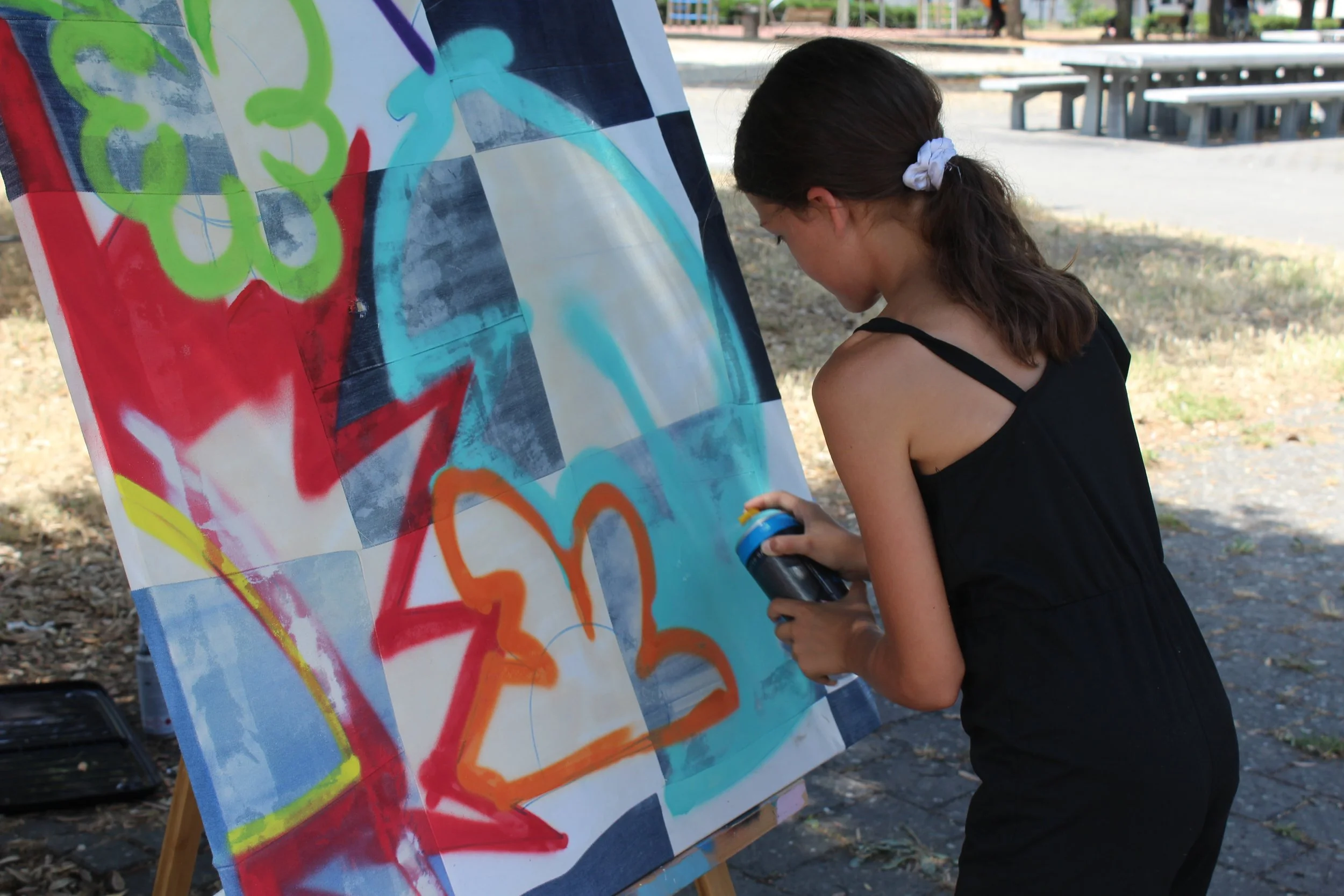 Conçue à partir de toiles recyclées (jeans, sneakers, textiles usagés), elle allie création et sensibilisation à l’impact environnemental. Les œuvres sont distribuées à la fin de chaque fresque !