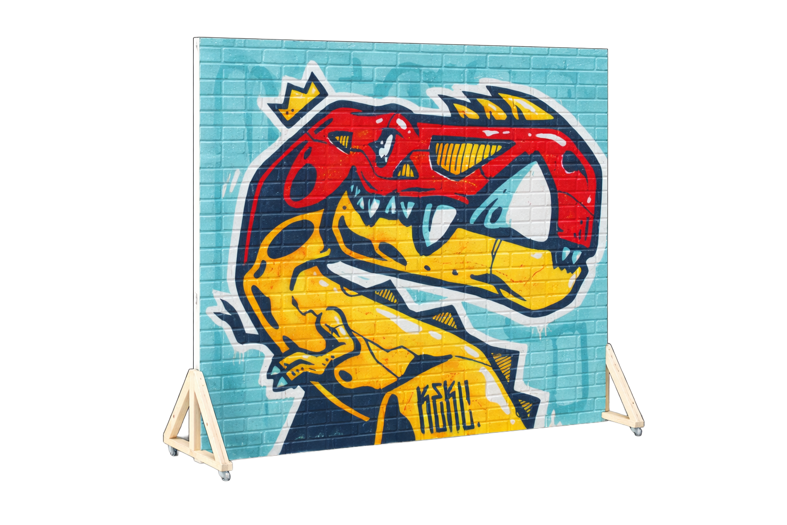 Pensé comme une extension scénographique de nos fresques, il transforme instantanément un lieu en espace d’expression artistique.