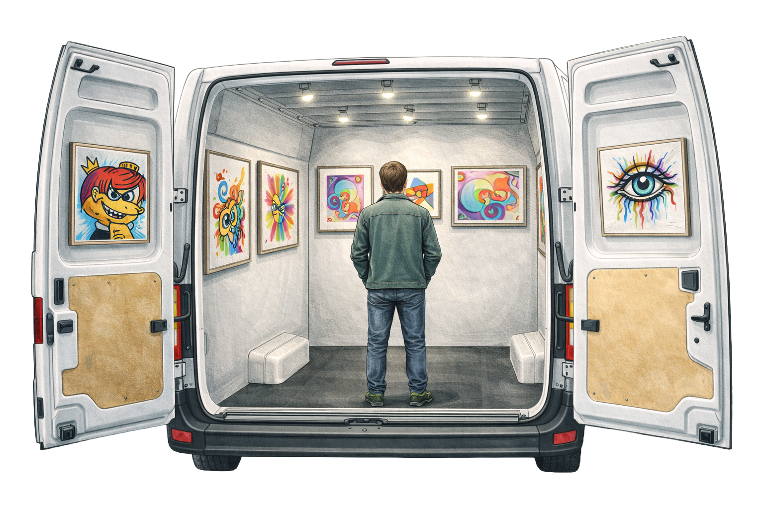 Notre camion galerie embarque nos murs mobiles pour amener l’art où vous le souhaitez : au cœur de votre structure, dans un quartier ou sur un festival.