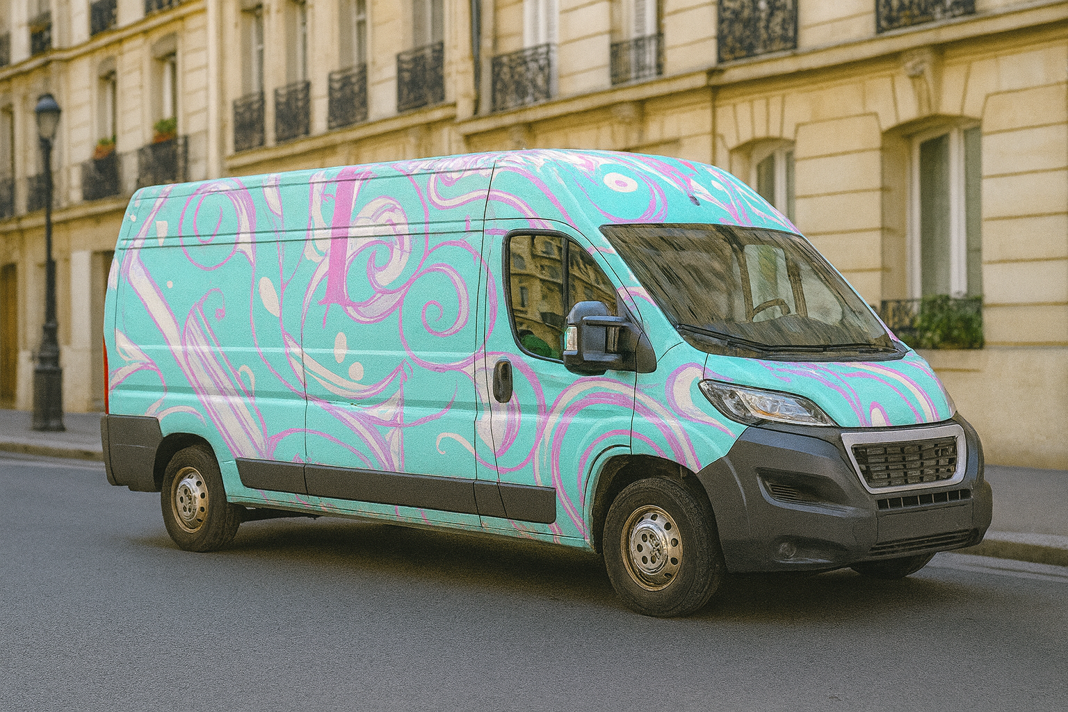À l’intérieur du camion, le public découvre une micro-galerie mobile, présentant des œuvres originales créées à partir de textiles recyclés.