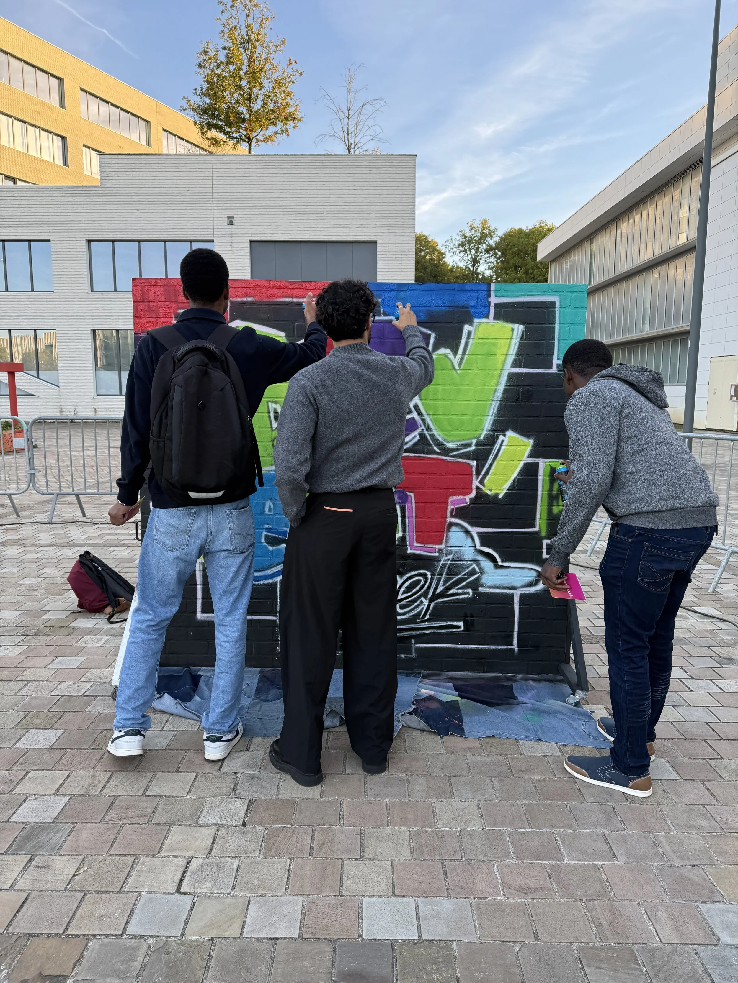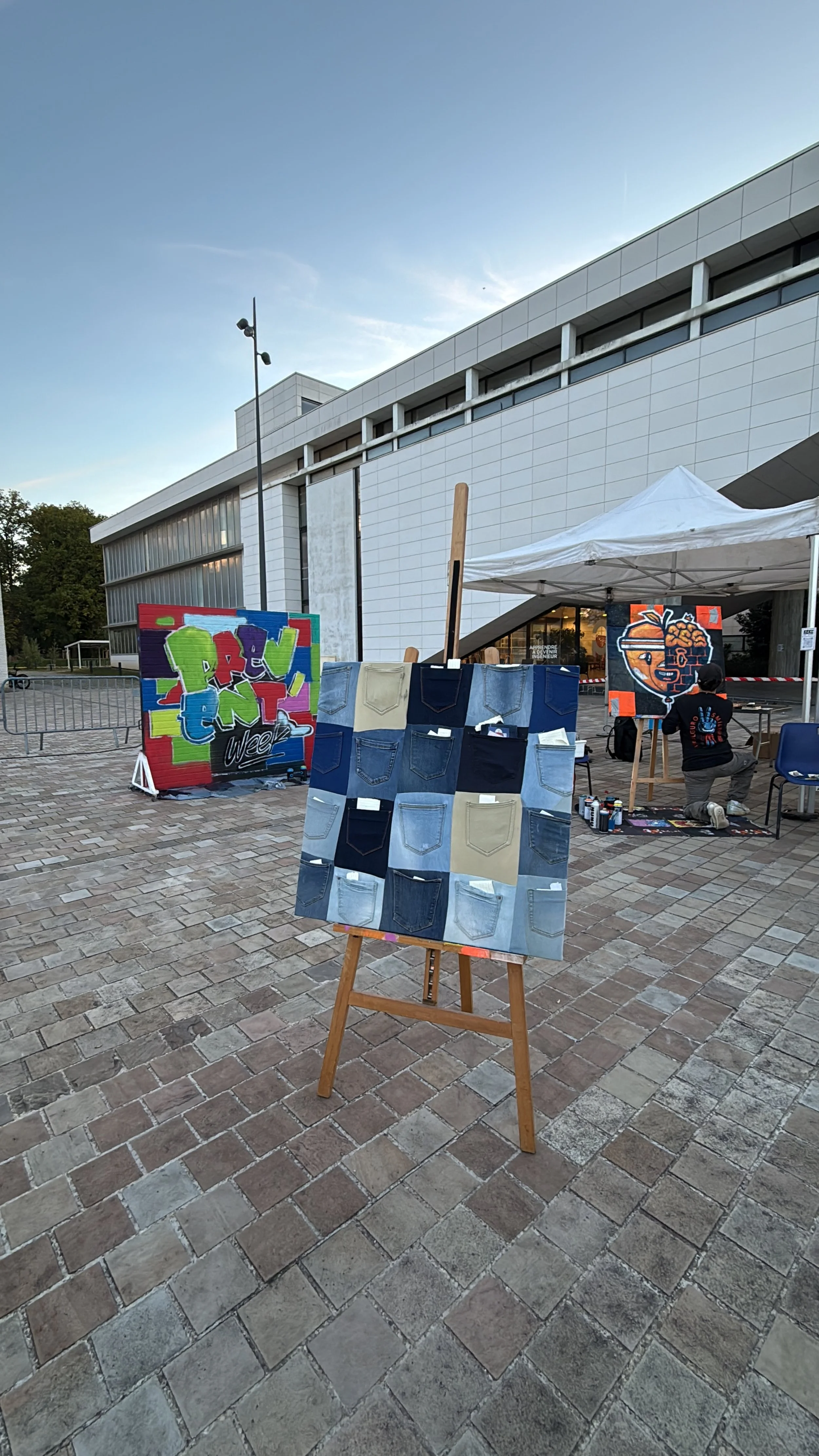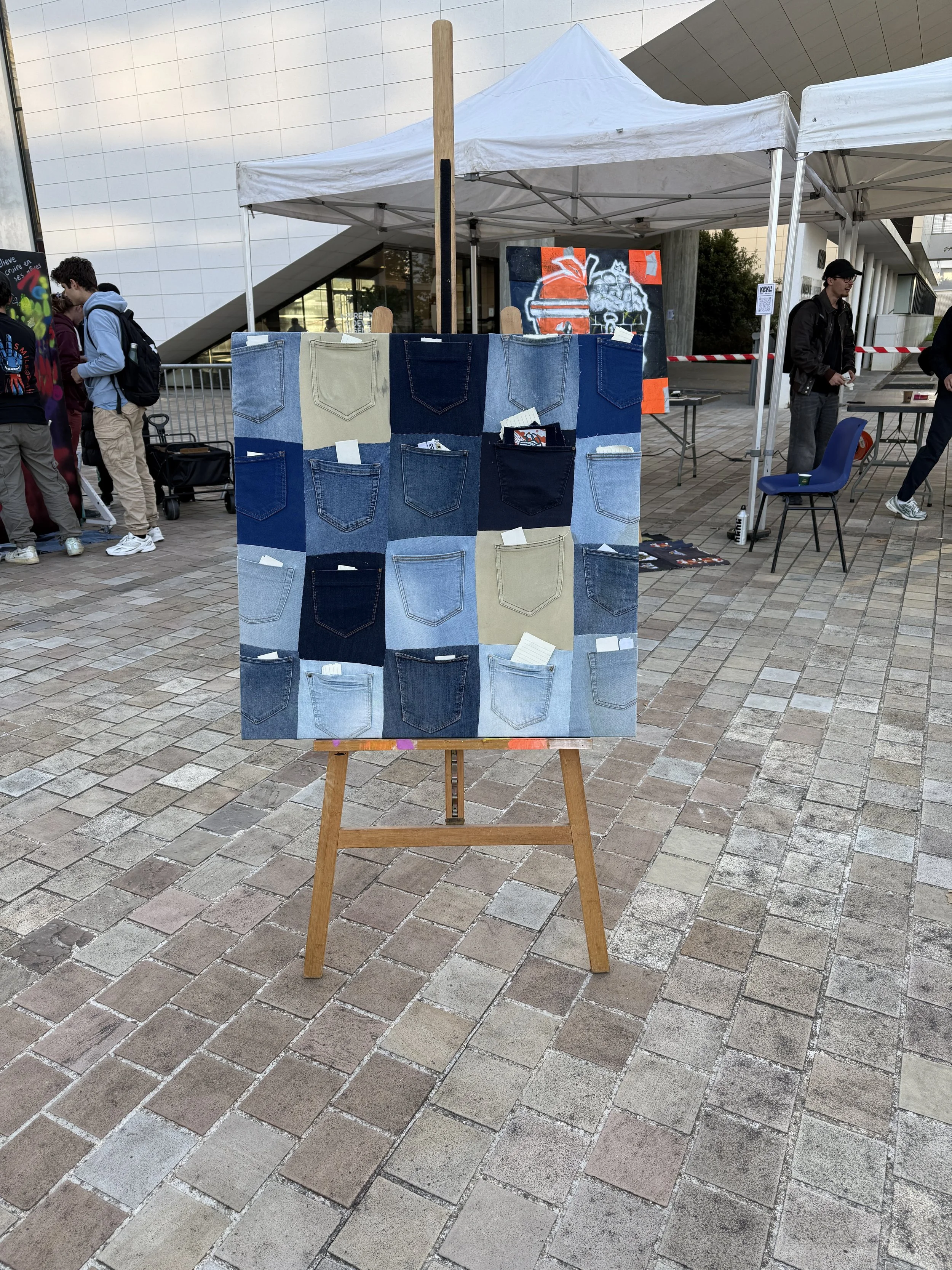 Fresque participative, live painting et patchwork en jean recyclé pour l’Université Paris-Saclay dans le cadre des Prevent Week. Un projet artistique, collaboratif et engagé autour du recyclage textile et des messages positifs.
