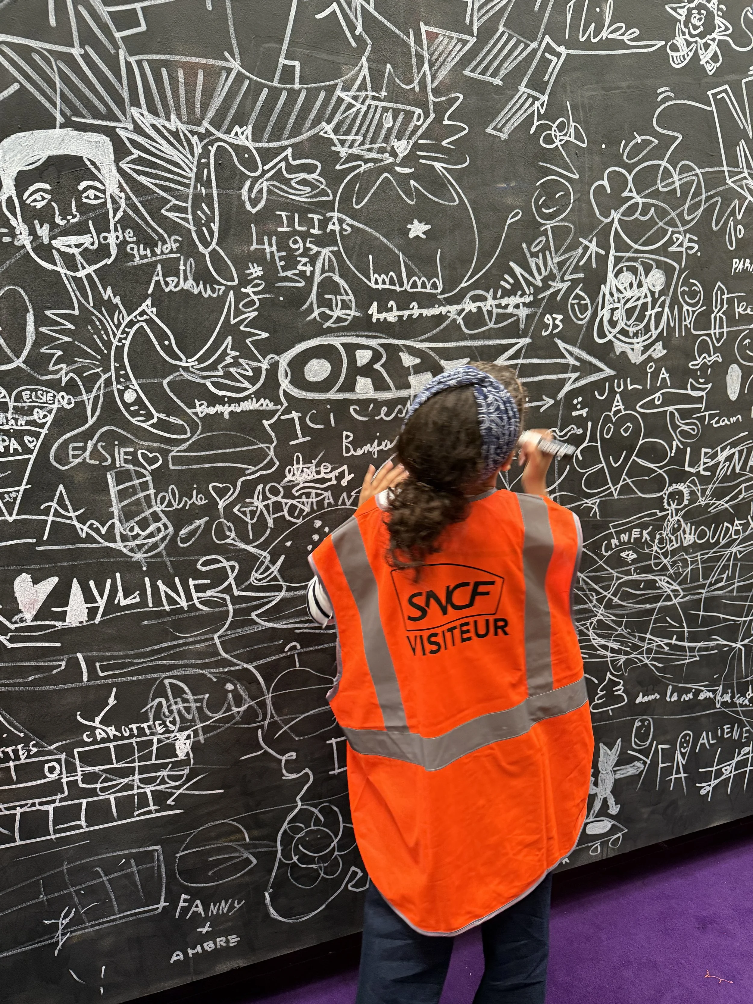 Deux Patchworks Kholab, également conçus à partir du textile SNCF, ont permis aux participant·es de laisser un message de remerciement ou de soutien à leur équipe, rendant hommage aux savoir-faire et à la solidarité qui animent ce lieu.
